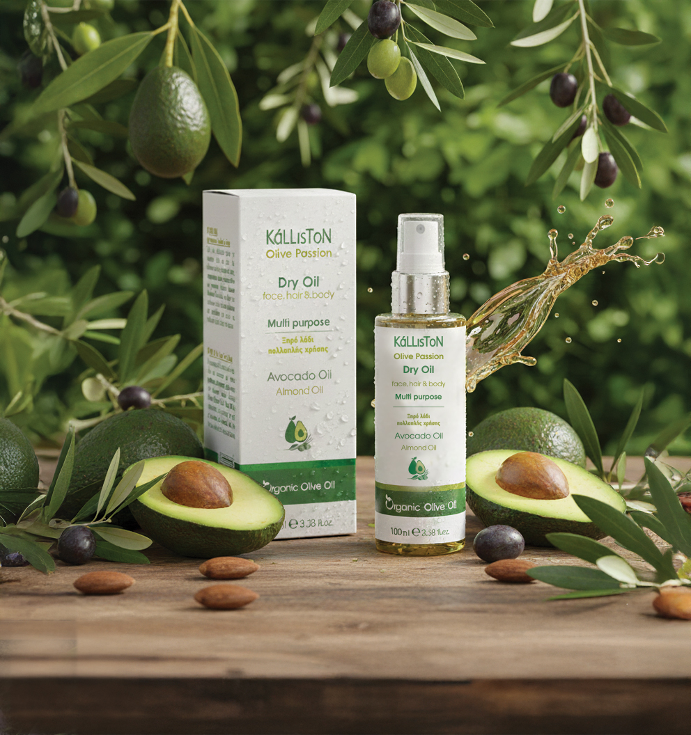 Dry cosmetic oil for face, hair & body. With an attractive and sweet perfume of bergamot, apple, rose and jasmine notes. Contains Cretan Organic (Bio) Olive Oil for nourishment and hydration, as well as avocado and almond oils, for hair and skin full of shine and beauty.