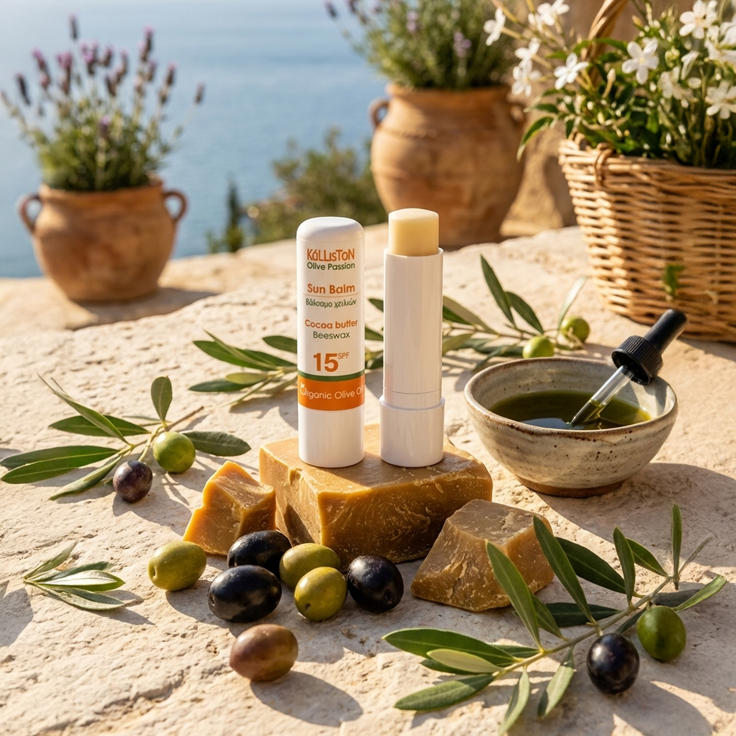 Cocoa butter and beeswax hydrate the rough-dehydrated areas of lips.